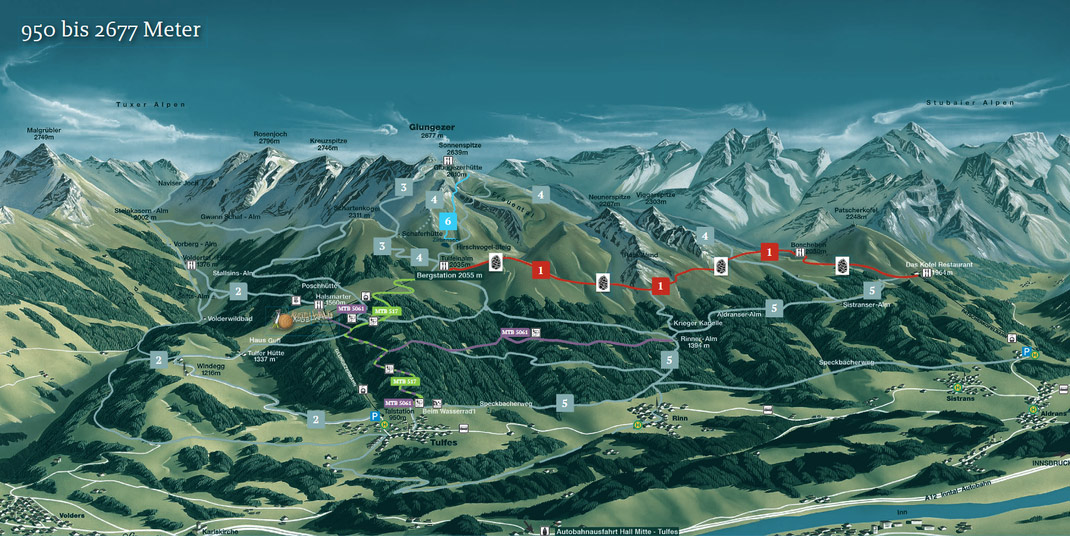 Von Innsbruck bist du in nur 15 Minuten bei uns und kannst hier die schönsten Sonnenauf- und Sonnenuntergänge in der beeindruckenden Tiroler Bergkulisse erleben.