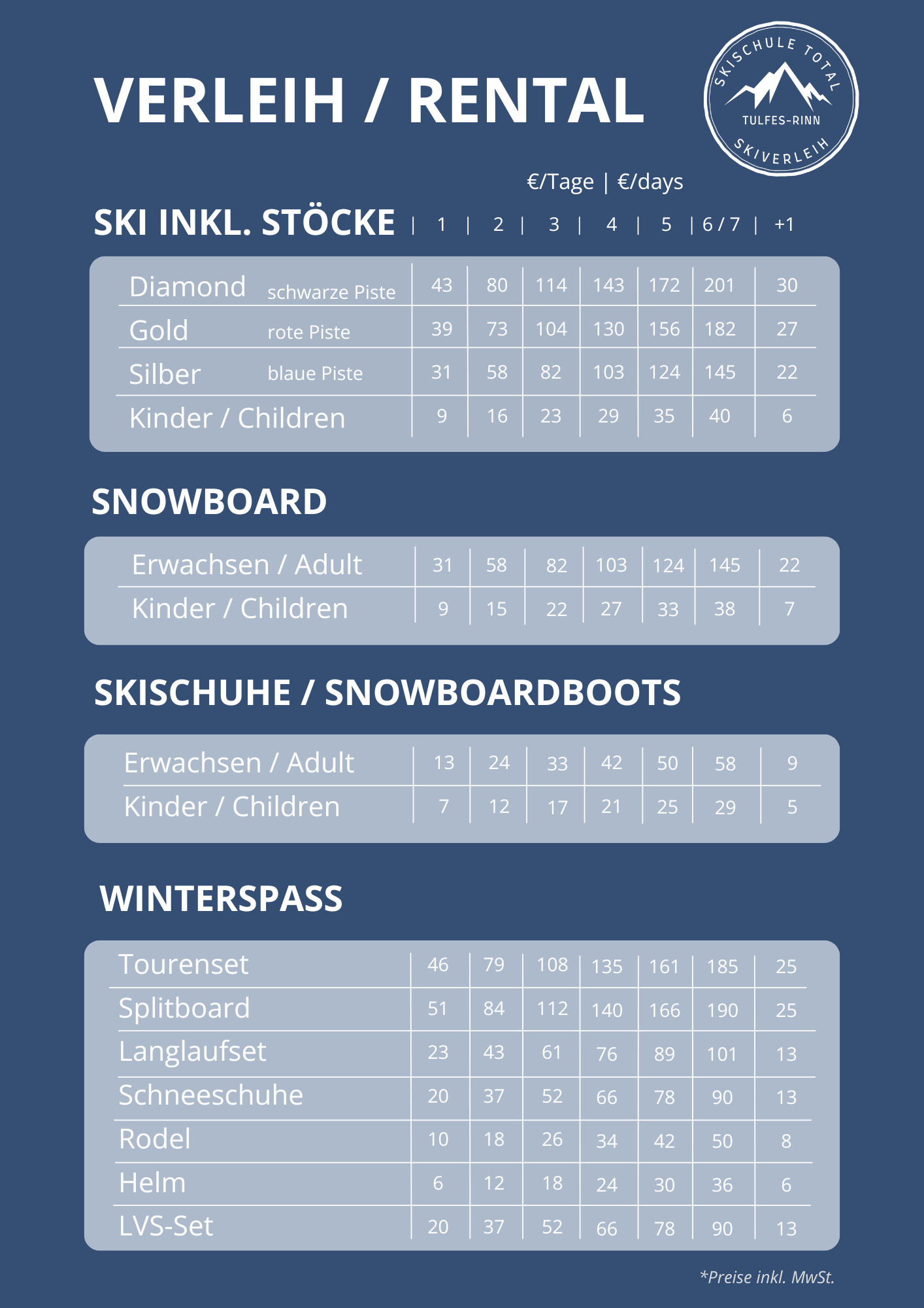 Ski- und Snowboard-Verleih in Tulfes und am Kolsassberg